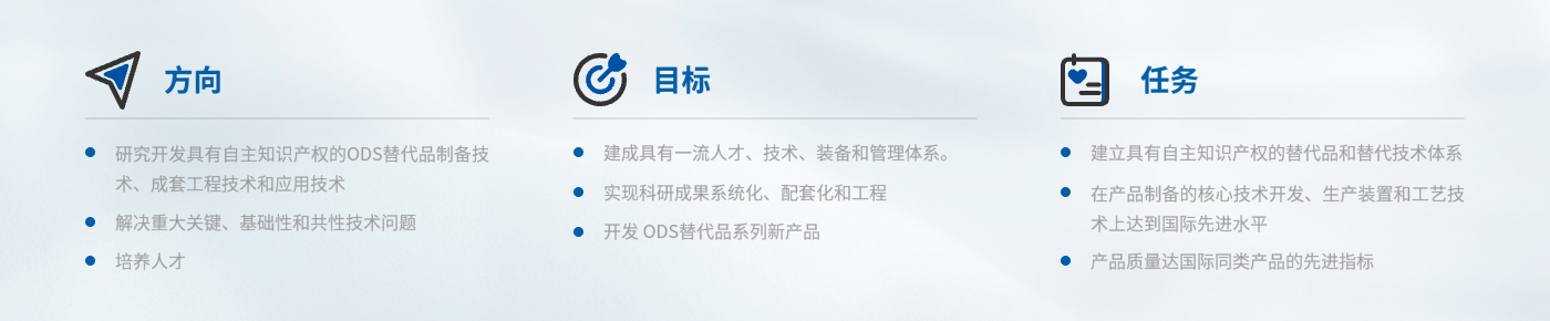 中心自成立以来以国内外市场需求为导向,研究开发具有自主知识产权的ODS替代品制备技术、成套工程技术和应用技术,建成具有一流人才、技术、装备和管理的工程技术研究中心和ODS替代品工程技术承包公司,加速科研成果的工程化、商品化、国际化,促进全行业科学技术的进步,推进我国ODS替代品产业的发展。2003年12月,中心通过了国家科技部验收。
